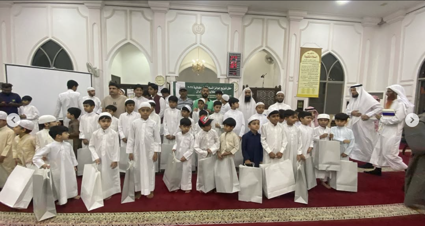 نظم مركز الشيخة حصة الإسلامي يوم السبت الموافق 19 أبريل بعد صلاة العشاء، حفلاً مميزاً في جامع الشيخ أحمد بن سلمان بالرفاع ، وذلك بمناسبة ختام المسابقة الرمضانية باللغة الأردية، إلى جانب تكريم طلاب برنامج تصحيح التلاوة للأطفال. تخلل الحفل أجواء إيمانية وروحانية رائعة، حيث تم توزيع جوائز نقدية قيّمة على الفائزين في المسابقة، كما تم تكريم المشاركين في برنامج تصحيح التلاوة الذي شهد تطوراً ملحوظاً في مستوى أداء الطلبة خلال الفترة الماضية. ويأتي هذا الحفل ضمن جهود المركز في تعزيز القيم الإسلامية، وتشجيع مختلف الجاليات على التفاعل والمشاركة في البرامج الدينية والثقافية، في أجواء يسودها الإخاء والمحبة.
